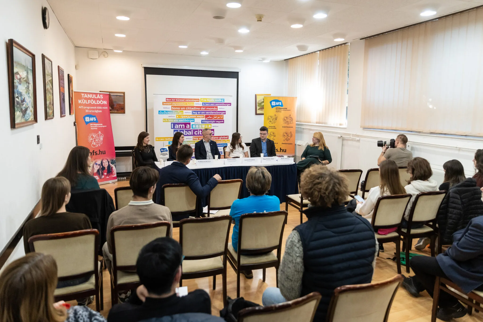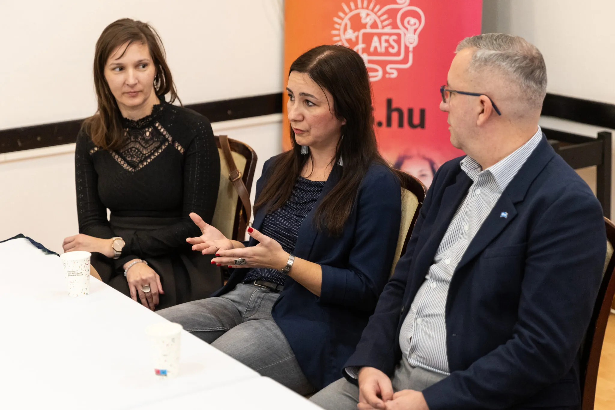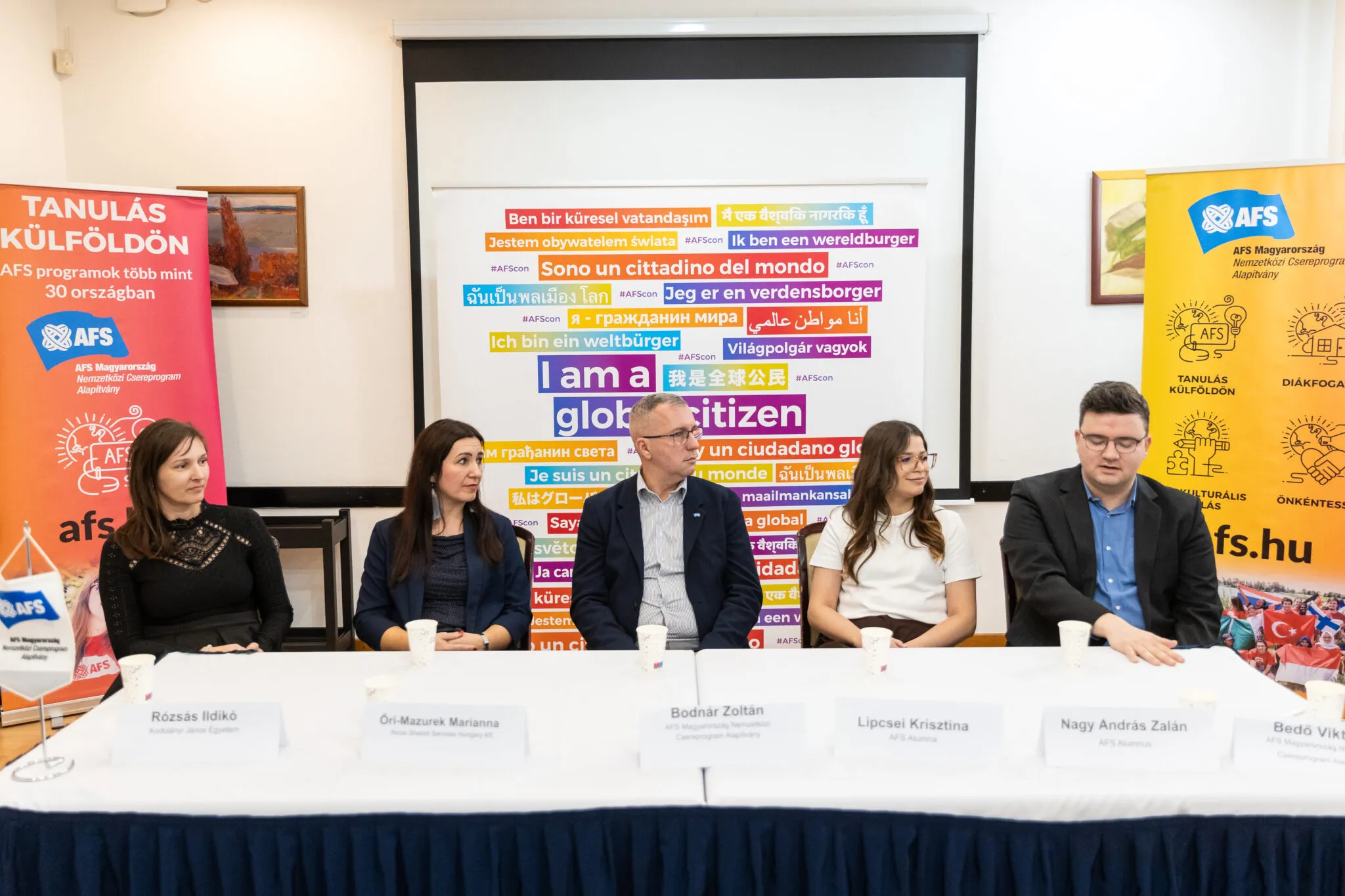 A „Határokon túl, jövőt építve – Nemzetközi élmények szerepe a középiskolások motivációjában és pályaválasztásában” című kerekasztal-beszélgetésen az AFS Magyarország, az Alcoa, a Kodolányi János Egyetem, valamint két visszatért AFS-es cserediák vett részt. A panelt Bedő Viktória, az AFS Magyarország marketing menedzsere moderálta.