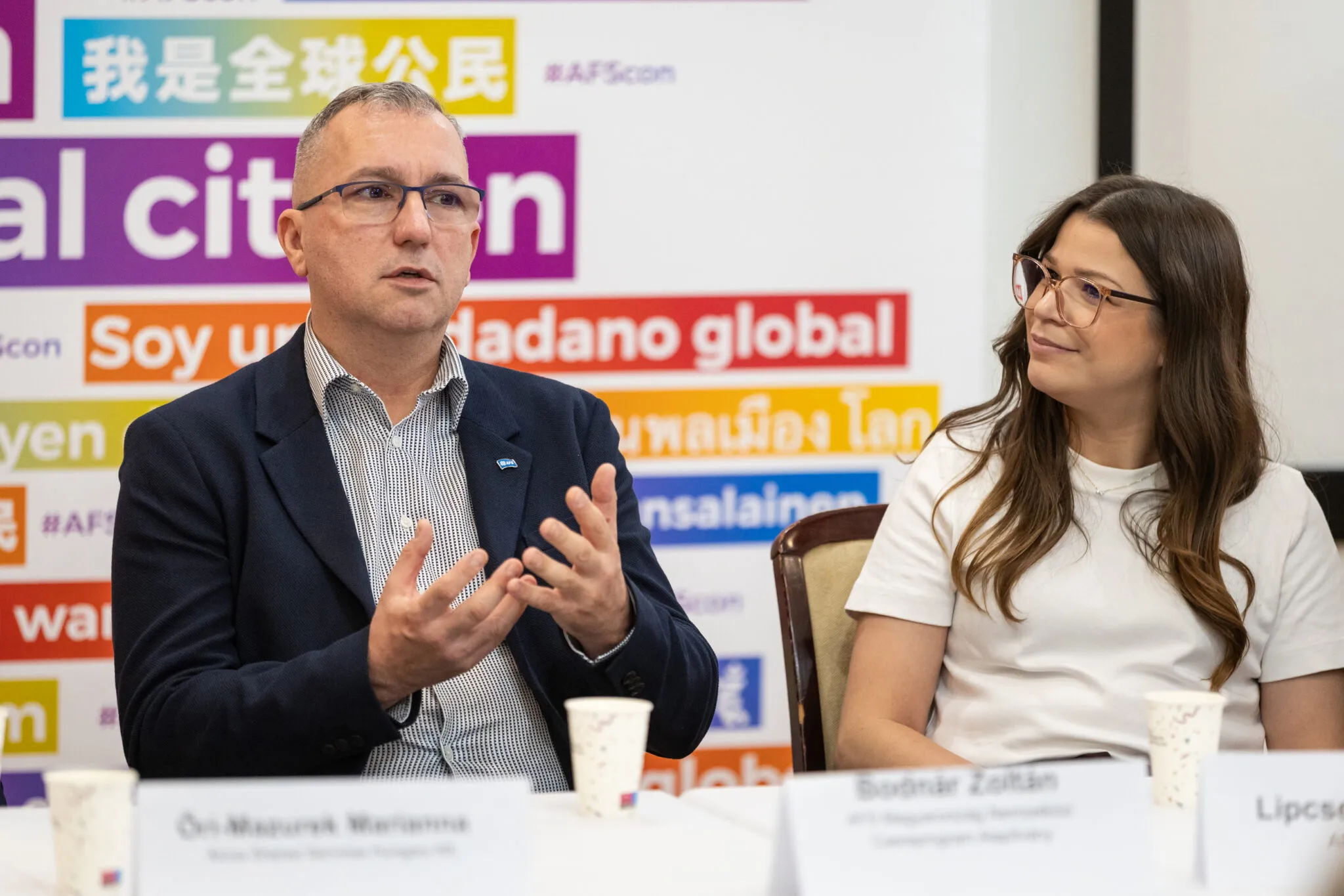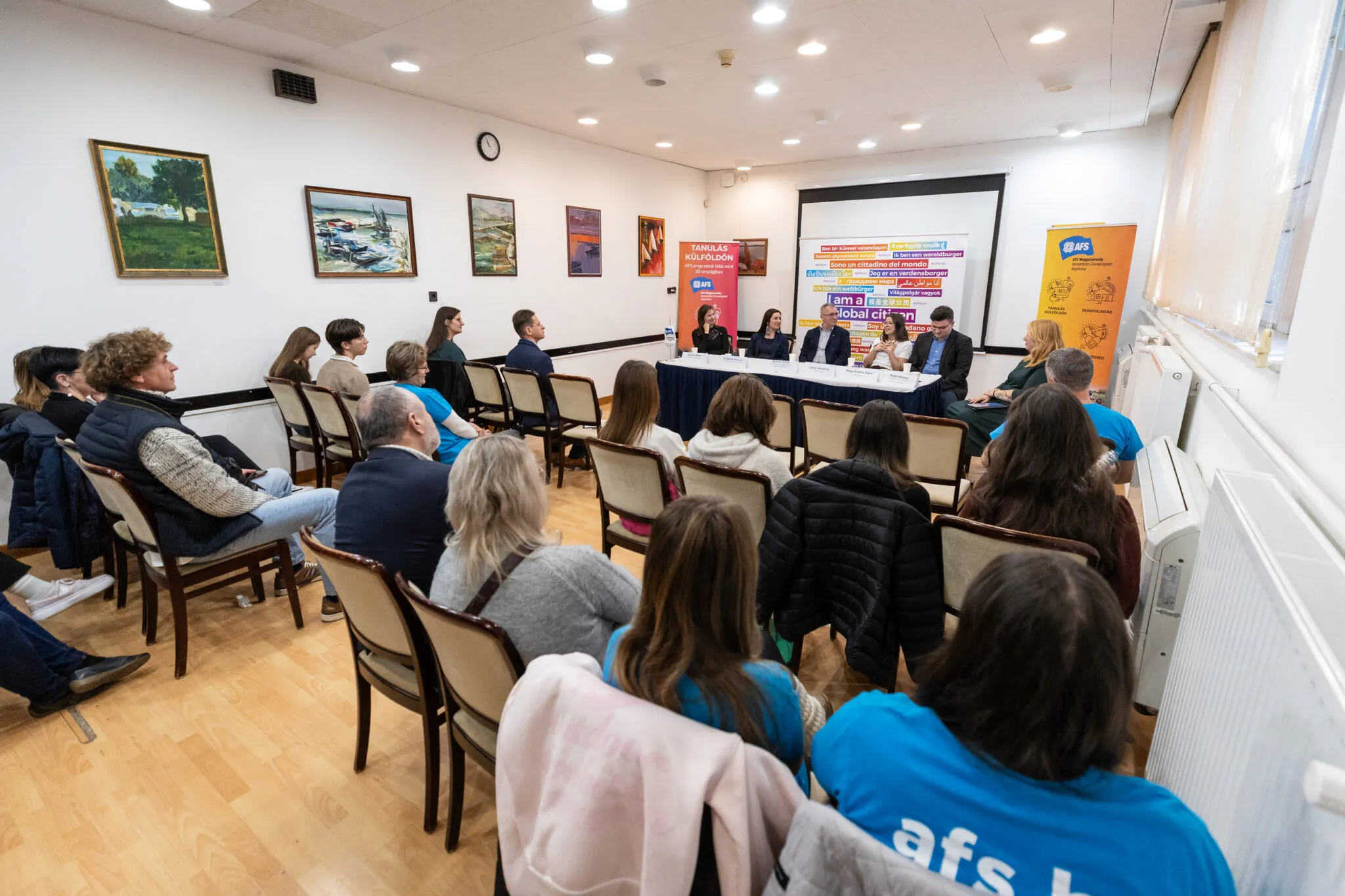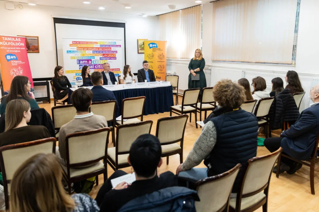 A „Határokon túl, jövőt építve – Nemzetközi élmények szerepe a középiskolások motivációjában és pályaválasztásában” című kerekasztal-beszélgetésen az AFS Magyarország, az Alcoa, a Kodolányi János Egyetem, valamint két visszatért AFS-es cserediák vett részt. A panelt Bedő Viktória, az AFS Magyarország marketing menedzsere moderálta.