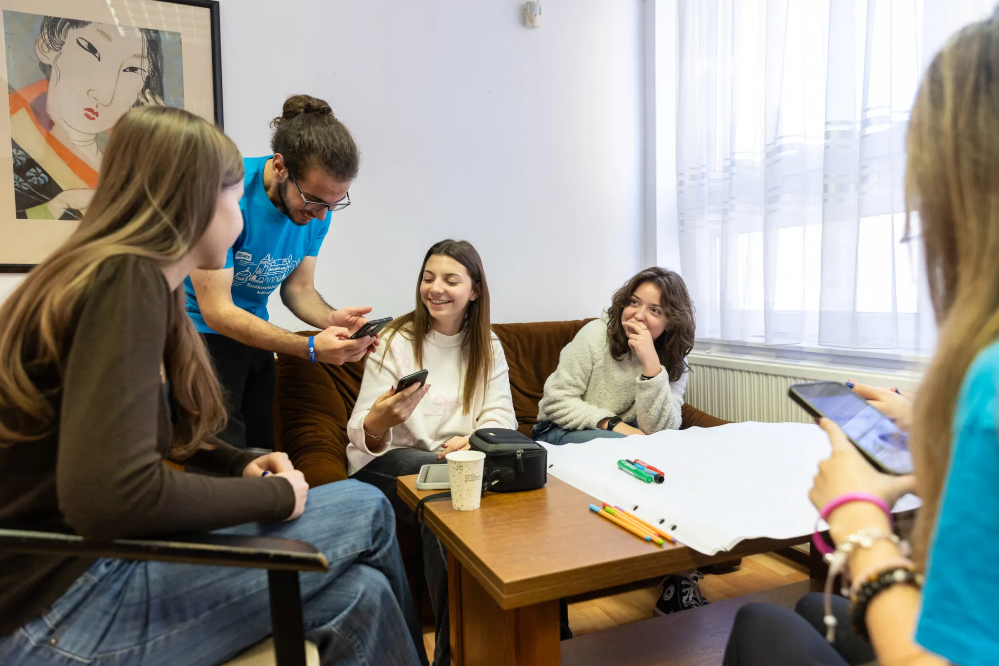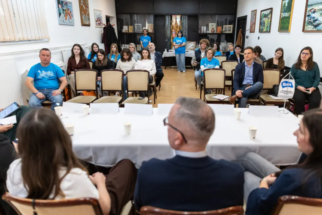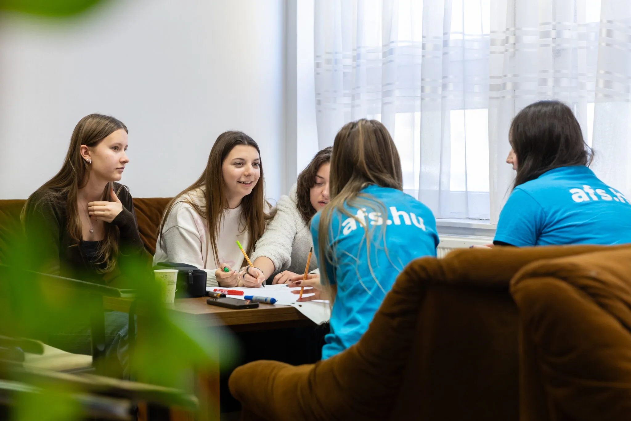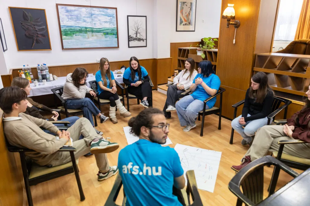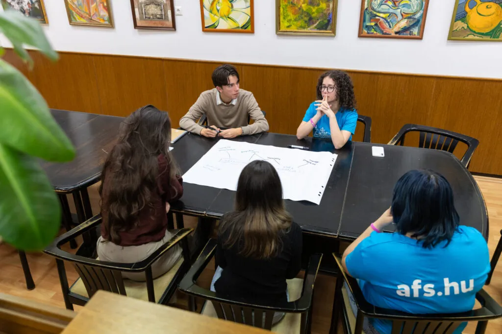 Ezután szakmai egyeztetés zajlott a résztvevő intézmények képviselőivel, mialatt a fiatal résztvevők az AFS trénere segítségével a kerekasztal témájában beszélgethettek World Café módszer segítségével.