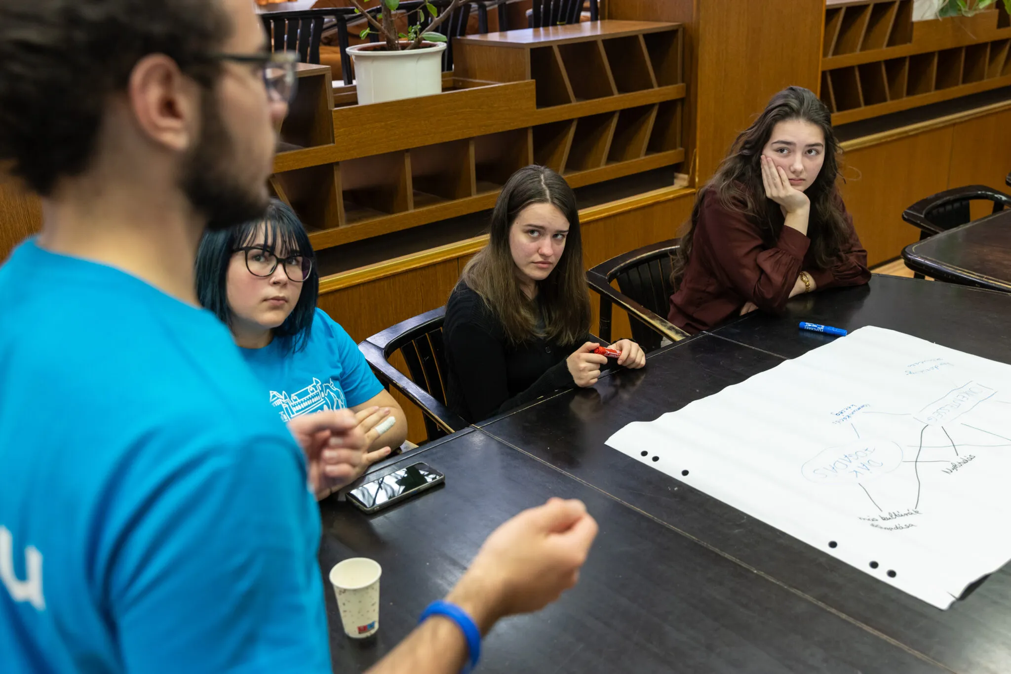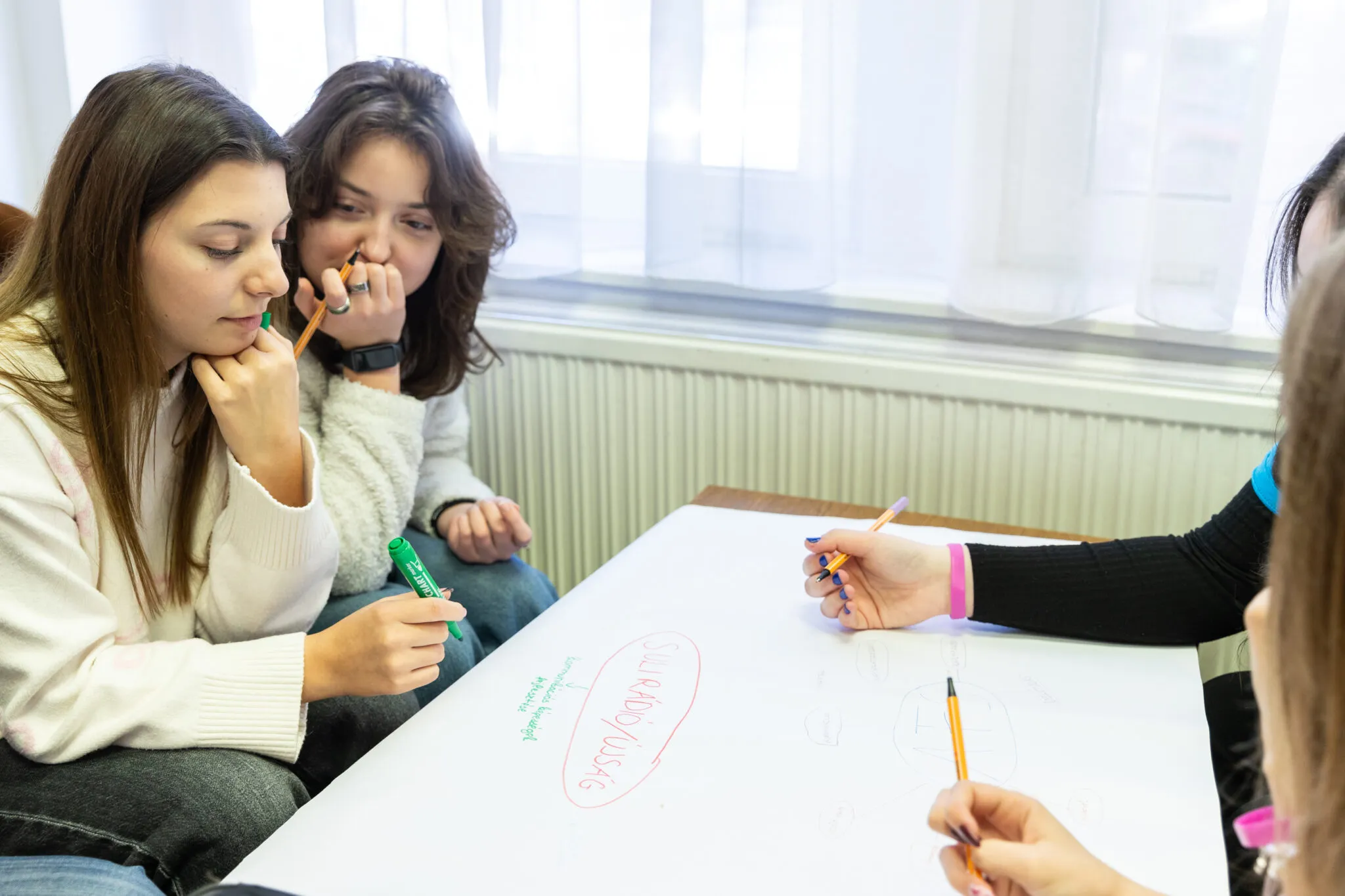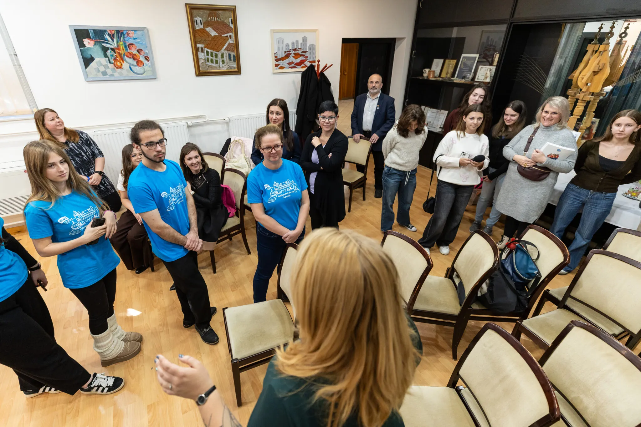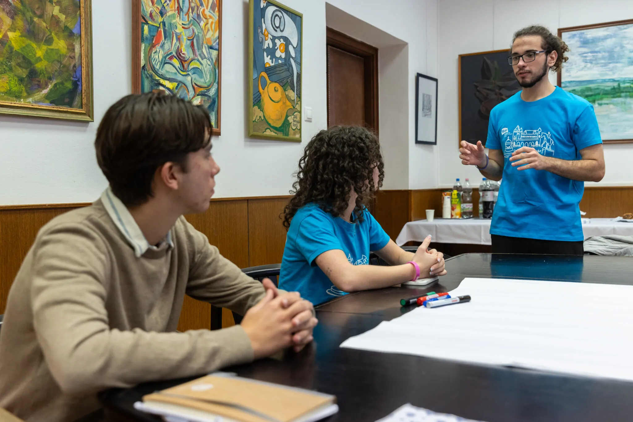 Ezután szakmai egyeztetés zajlott a résztvevő intézmények képviselőivel, mialatt a fiatal résztvevők az AFS trénere segítségével a kerekasztal témájában beszélgethettek World Café módszer segítségével.