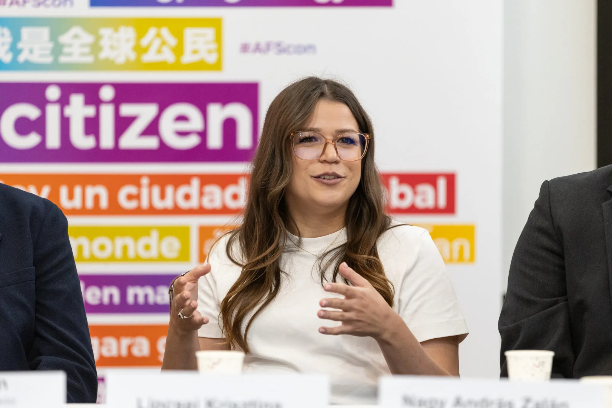 Lipcsei Kriszti, visszatért AFS-diák, aki ma már a Munch csapatánál dolgozik, elmondta: az AFS-es kiutazás egy olyan kritikus időszakban történik, amikor a diákok önállósodása elindul, megkezdődik az „önmaguk keresése”, és intenzíven nyílik, fejlődik a nyitottságuk. Hangsúlyozta, hogy ebben az életkorban a fiatalok kilépnek a korábbi kereteik közül, és a valóság igazolja vagy éppen cáfolja, amit addig a világról gondoltak vagy tanultak – ez az élmény alapvetően szélesíti a világlátásukat.